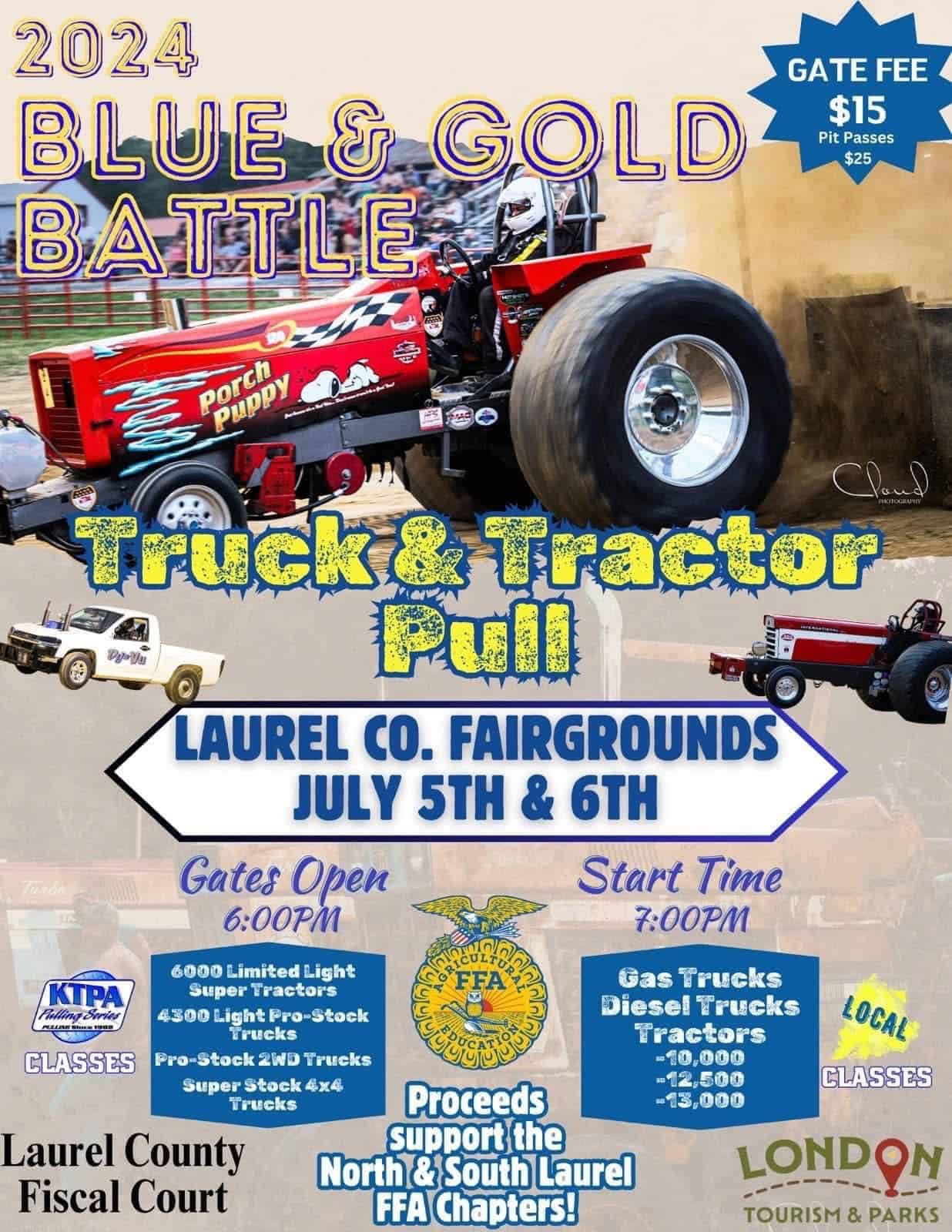 From its beginning in 2022, to its pause due to devastating storms, the Blue and Gold Tractor Pull tells a story of growth, partnership and perseverance. With continued support from generous sponsors, local businesses and loyal spectators, the South Laurel and North Laurel FFA Chapters look forward to bringing the show back to Laurel County — bigger, and stronger, than ever.
