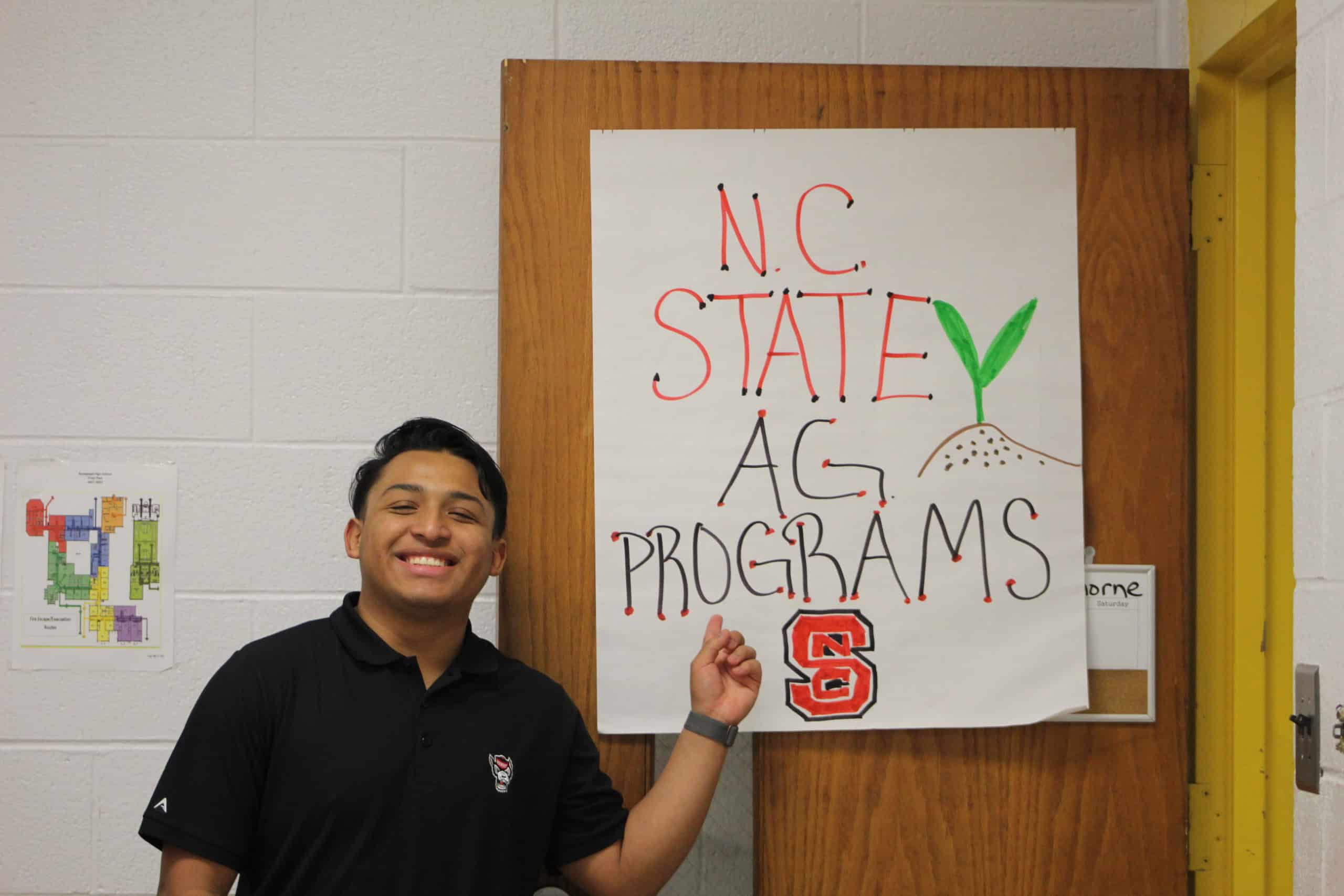 - Junior Torres proud of his NC State logo drawing.