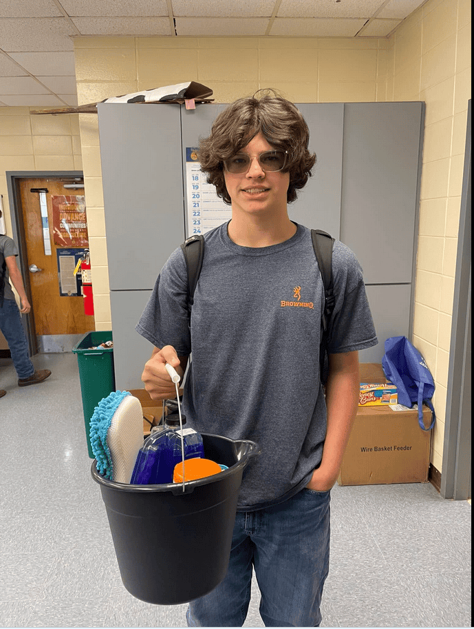 During this week, we also host a competition that gets our boys excited and involved. This is the dirtiest truck contest. For this competition, members must sign up to compete. On the list, they include their parking number and name, and during the first period a group of officers go out and judge who has the dirtiest vehicle. Participating in this competition gives members the ability to win a bucket of vehicle cleaning supplies and a feature on the morning announcements showing this proud achievement. Our past winner of this competition was Hinton Maulden, and he earned the title — his truck was covered in mud, dirt and weeds.