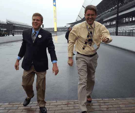 Mr. Rylan Rusk (left) and Mr. Mark Steber (right) share a laugh in Indianapolis, Ind., during the 91st National FFA Convention & Expo in 2018.