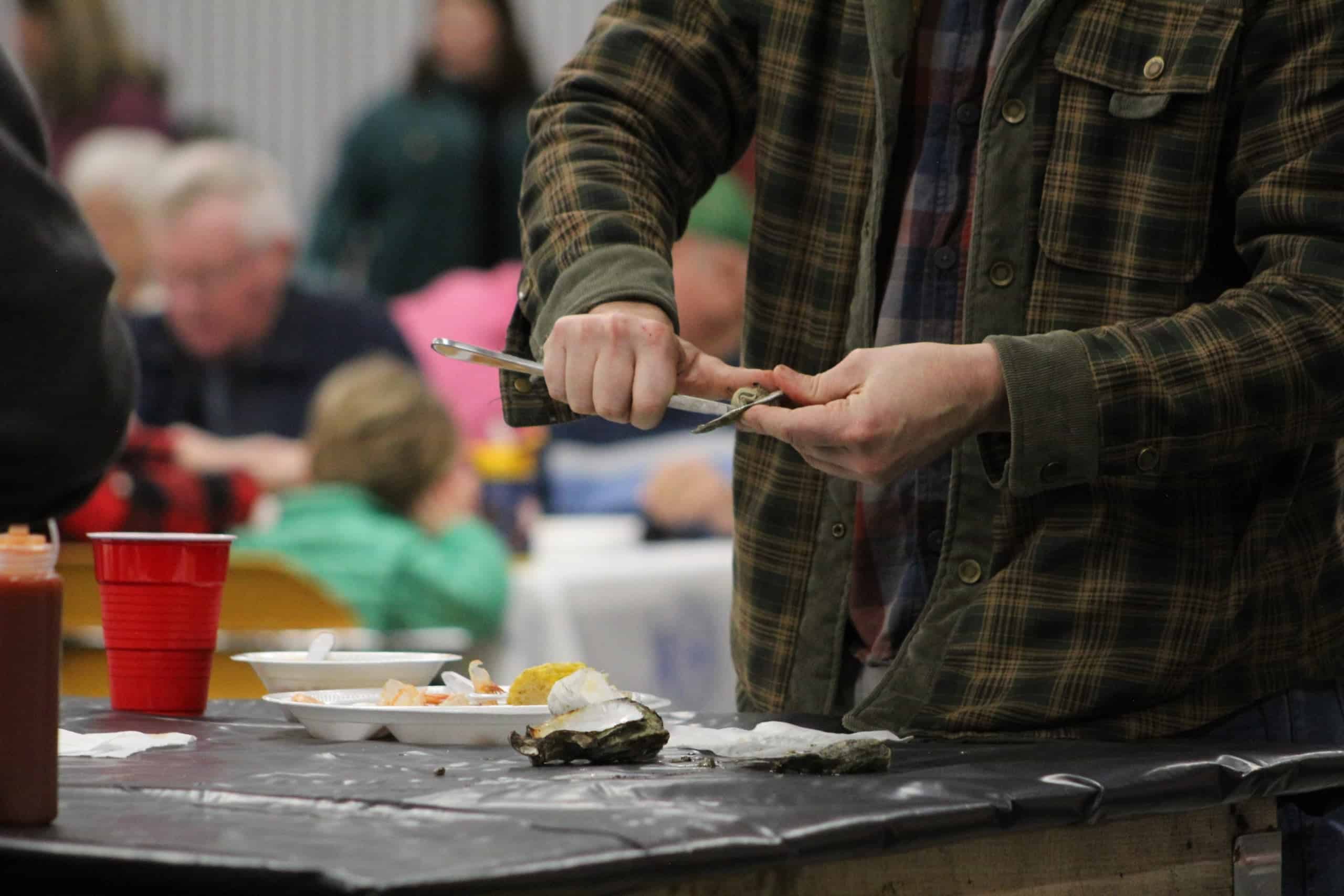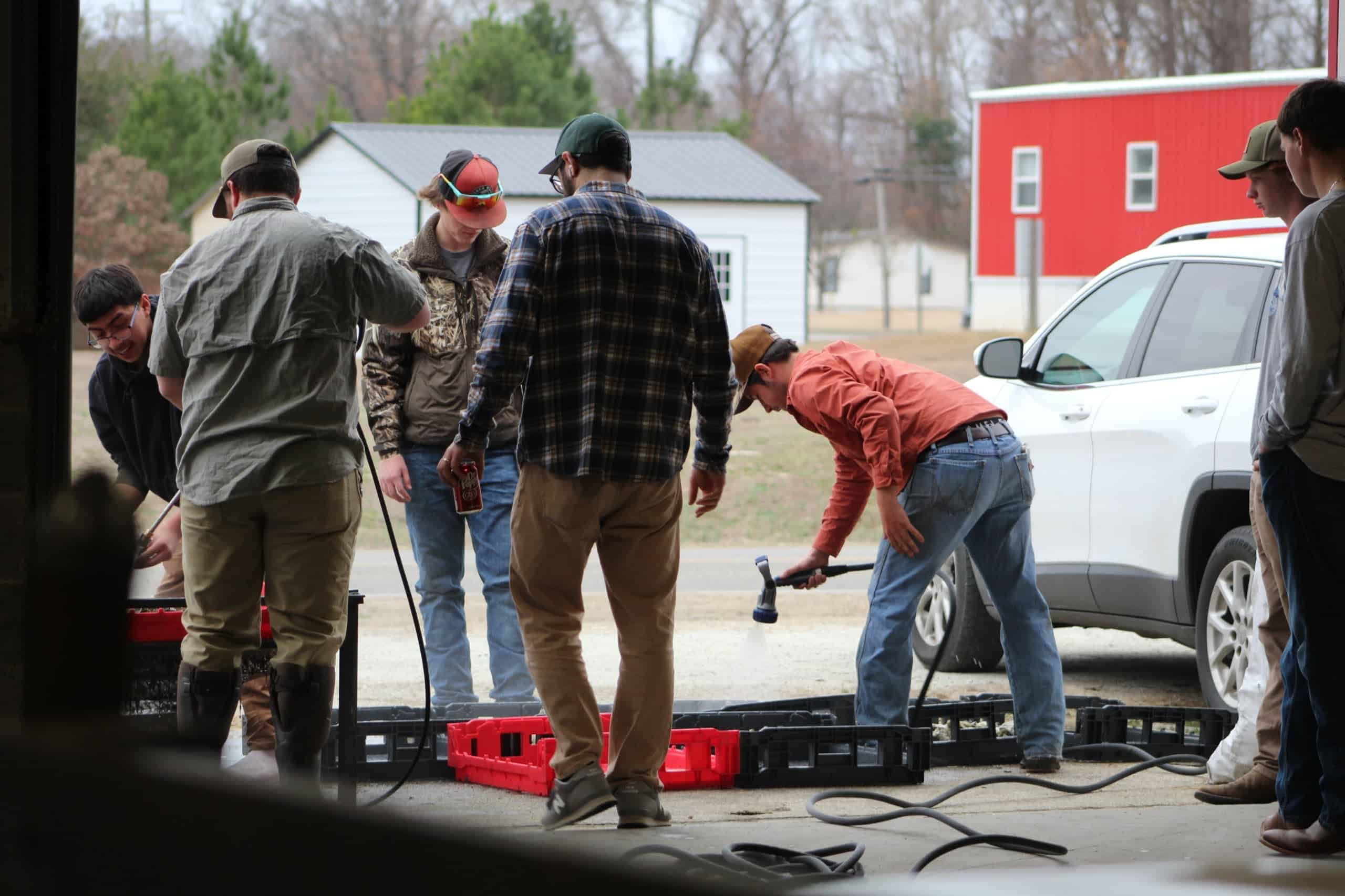 - FFA members cleaning and preparing oysters.