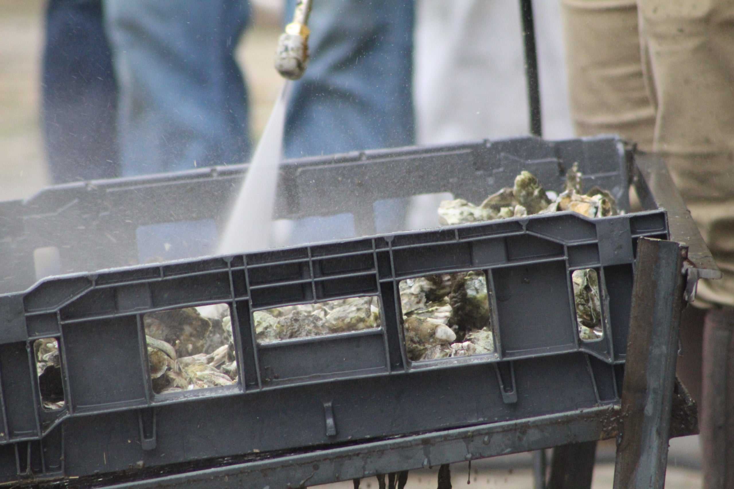 - Oysters being washed off.