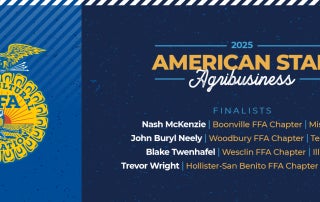 Meet the Finalists: 2025 American Star in Agribusiness Watch: It's all about agribusiness for these four 2025 American Star finalists. By FFA|2025-10-23T13:59:36-04:00October 23rd, 2025|Categories: 98th National FFA Convention & Expo, American Star Awards, The Feed|Tags: 2025 American Star Awards, 98th National FFA Convention & Expo, agribusiness, American Star Awards, california, Illinois, Missouri, Star awards, Star in Agribusiness, Tennessee| Read More
